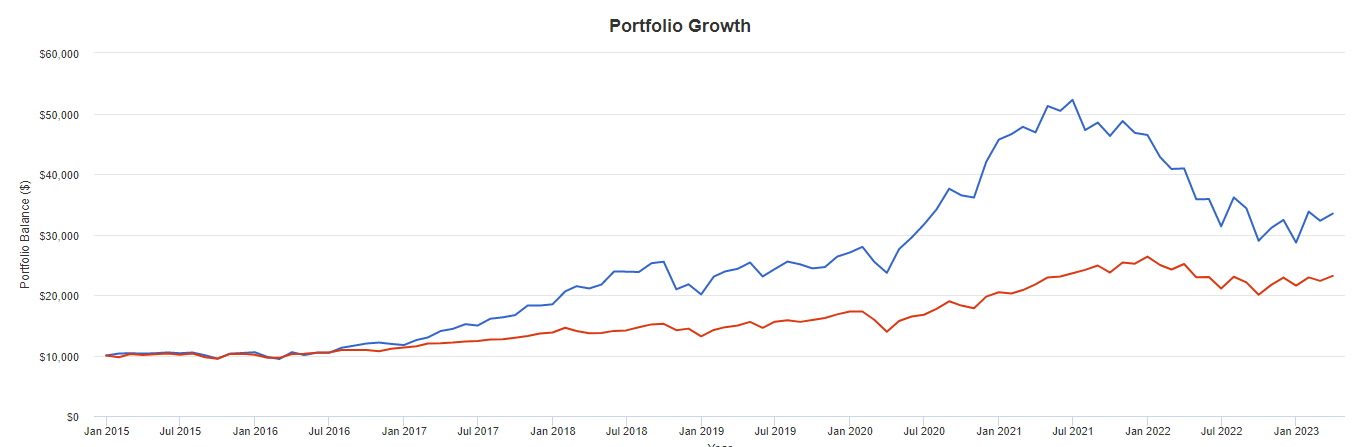 BST가 상장한날부터 S&P500 지수와 투자를 백테스트해본다면 어떤 결과가 나올까요?