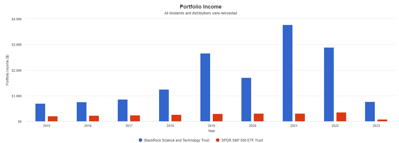 BST의 배당금은 2015년부터 꾸준히 증가해오기 시작해 10,000달러를 투자했다고 가정할 시